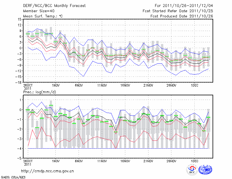长 春 (LAT:43.90 LON:125.22) 2011-10-26        预测