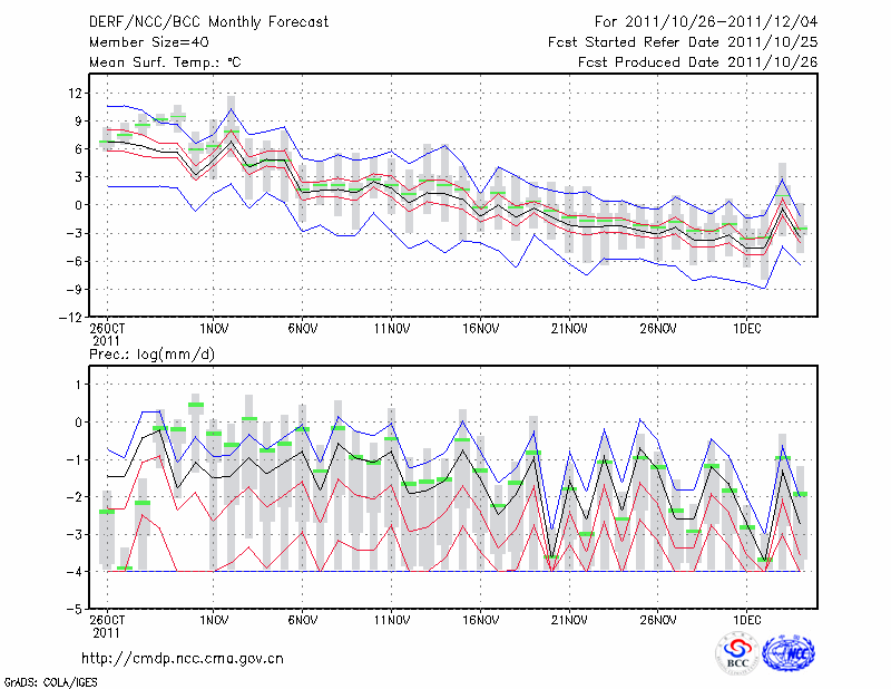 张 家 口 (LAT:40.78 LON:114.88) 2011-10-26        预测