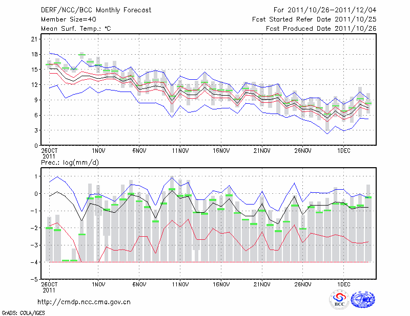 青 岛 (LAT:36.07 LON:120.33) 2011-10-26        预测
