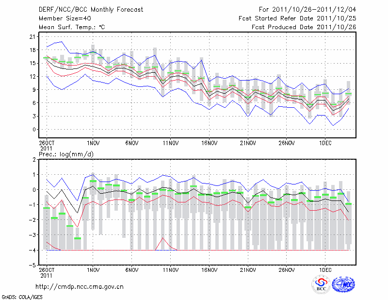 合 肥 (LAT:31.87 LON:117.23) 2011-10-26        预测