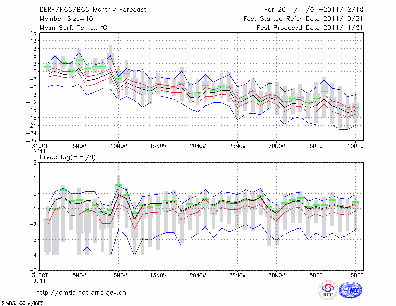 佳 木 斯 (LAT:46.49 LON:130.17) 2011-11-01        预测