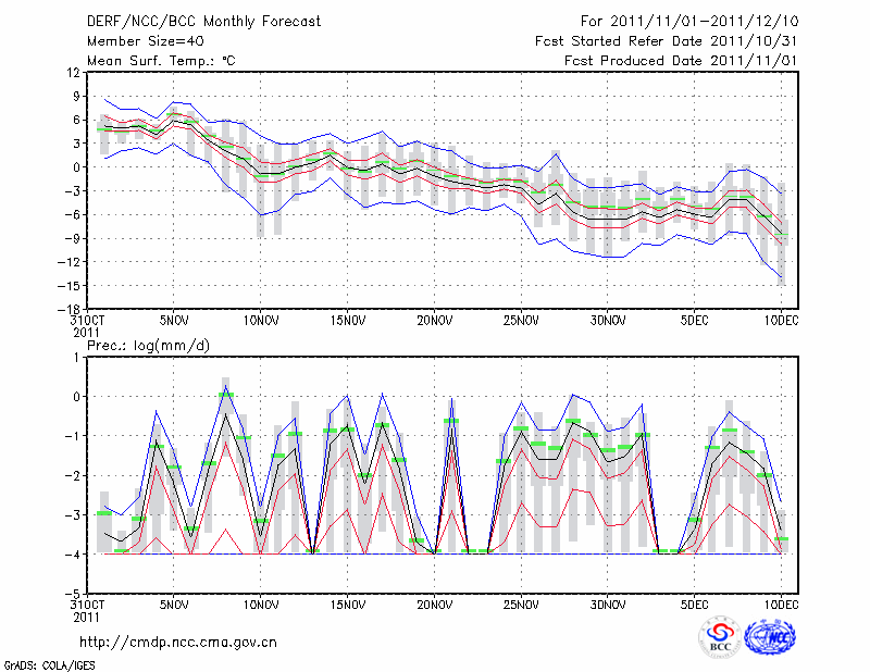 哈 密 (LAT:42.82 LON:93.52) 2011-11-01        预测