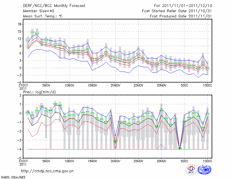 临 汾 (LAT:36.05 LON:111.32) 2011-11-01        预测