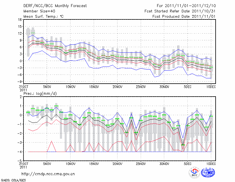 西 峰 镇 (LAT:35.73 LON:107.63) 2011-11-01        预测