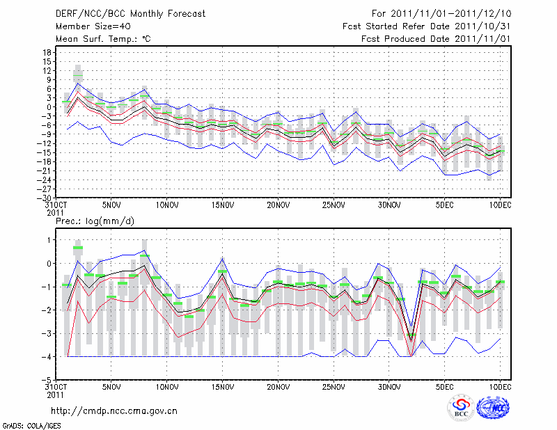 锡林浩特 (LAT:43.95 LON:116.07) 2011-11-01        预测