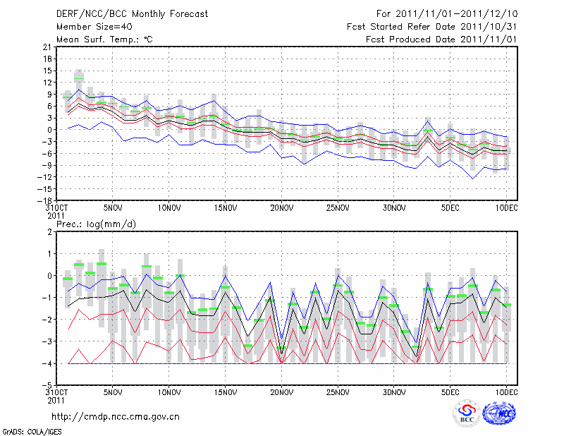 张 家 口 (LAT:40.78 LON:114.88) 2011-11-01        预测