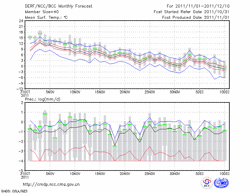 潍 坊 (LAT:36.70 LON:119.08) 2011-11-01        预测