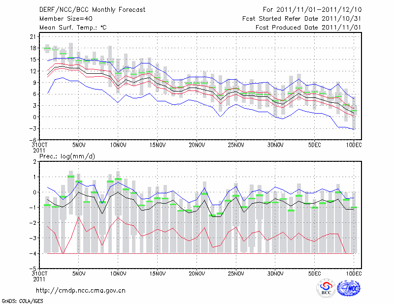 青 岛 (LAT:36.07 LON:120.33) 2011-11-01        预测