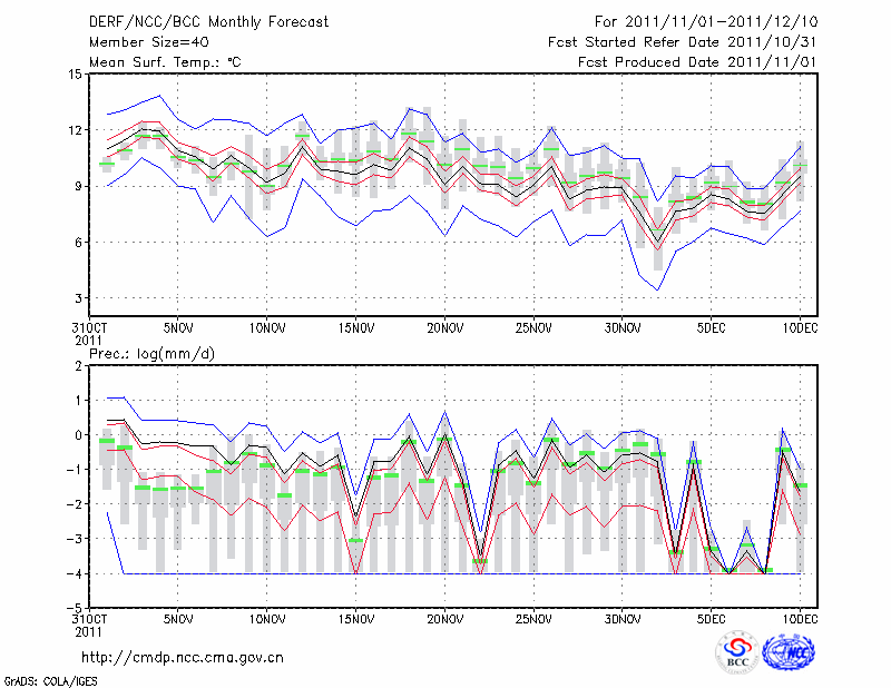 丽 江 (LAT:26.83 LON:100.47) 2011-11-01        预测