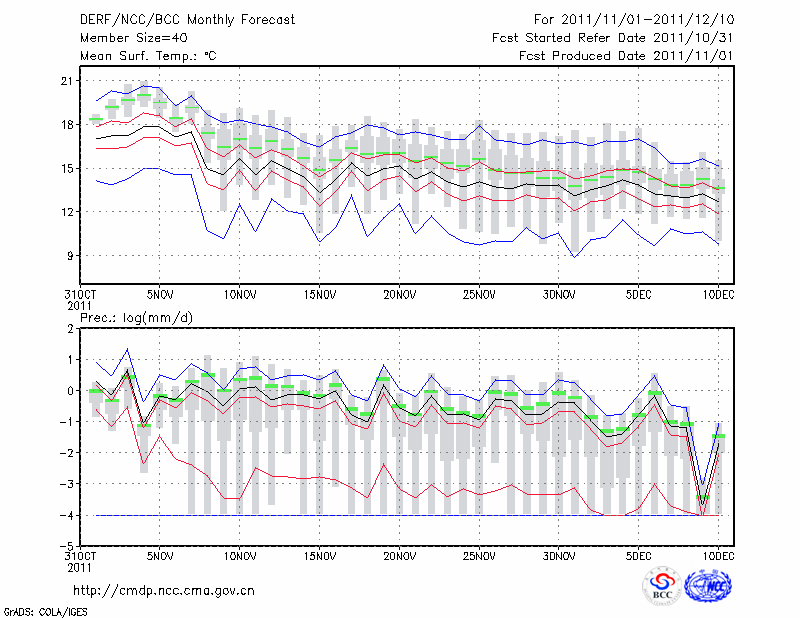 蒙 自 (LAT:23.38 LON:103.38) 2011-11-01        预测