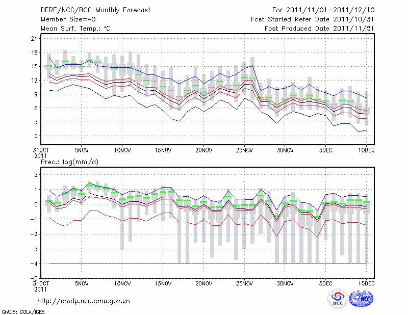 酉 阳 (LAT:28.83 LON:108.77) 2011-11-01        预测
