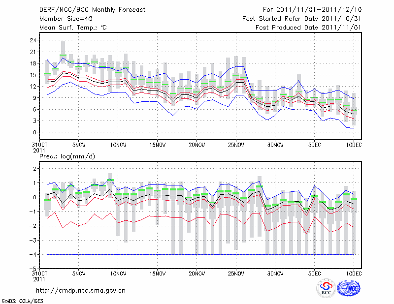 芷 江 (LAT:27.45 LON:109.68) 2011-11-01        预测