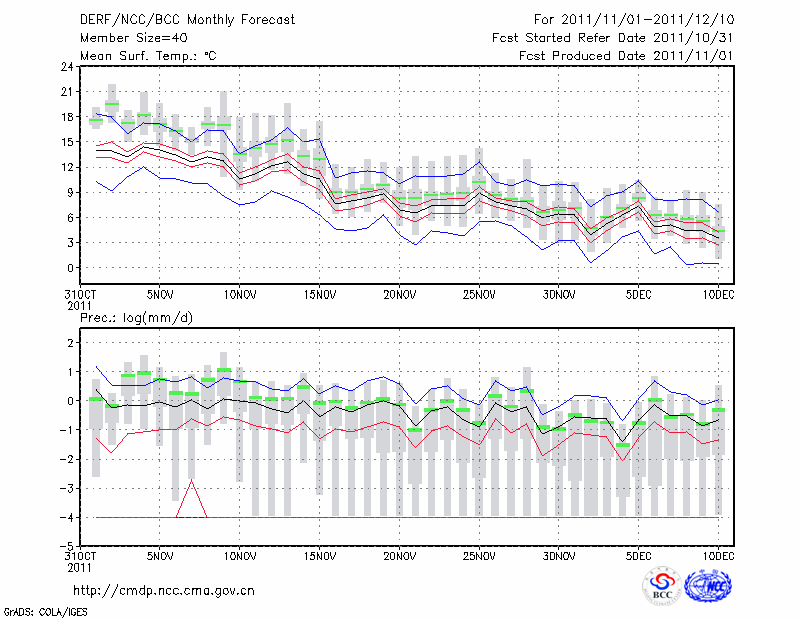 合 肥 (LAT:31.87 LON:117.23) 2011-11-01        预测