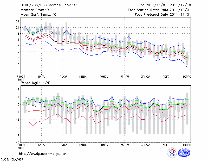 衢 县 (LAT:28.97 LON:118.87) 2011-11-01        预测