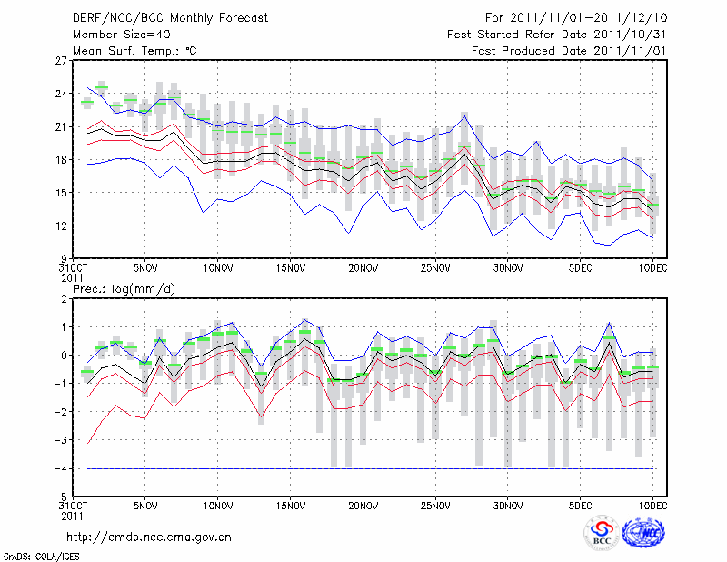 福 州 (LAT:26.08 LON:119.28) 2011-11-01        预测