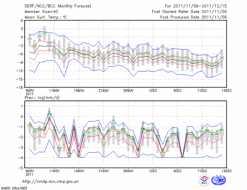 乌兰浩特 (LAT:46.08 LON:122.05) 2011-11-06        预测