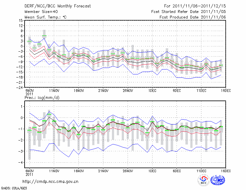 哈 尔 滨 (LAT:45.75 LON:126.77) 2011-11-06        预测