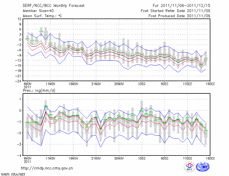 鸡 西 (LAT:45.28 LON:130.95) 2011-11-06        预测