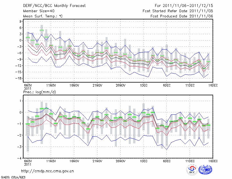 牡 丹 江 (LAT:44.57 LON:129.60) 2011-11-06        预测