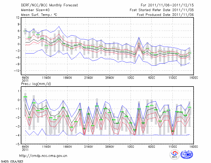张 家 口 (LAT:40.78 LON:114.88) 2011-11-06        预测