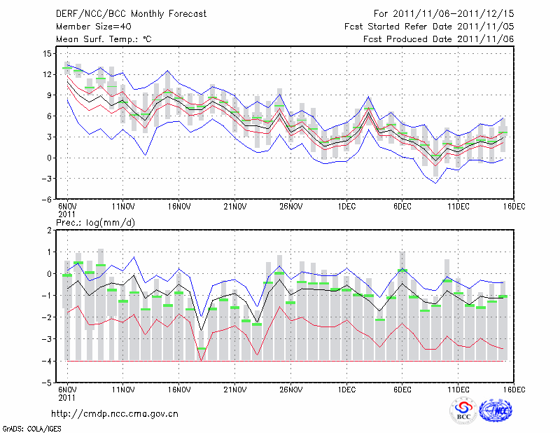 潍 坊 (LAT:36.70 LON:119.08) 2011-11-06        预测