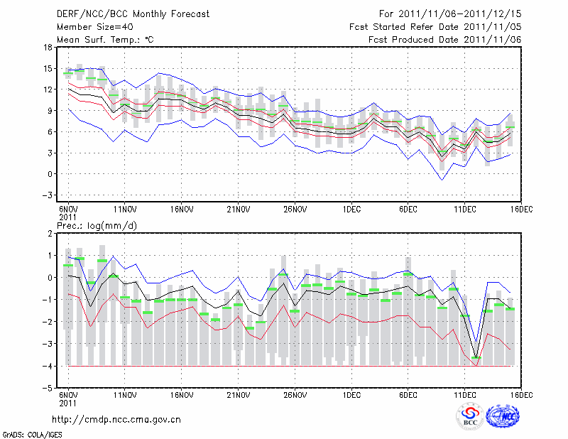 青 岛 (LAT:36.07 LON:120.33) 2011-11-06        预测