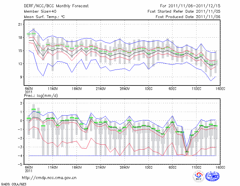 蒙 自 (LAT:23.38 LON:103.38) 2011-11-06        预测
