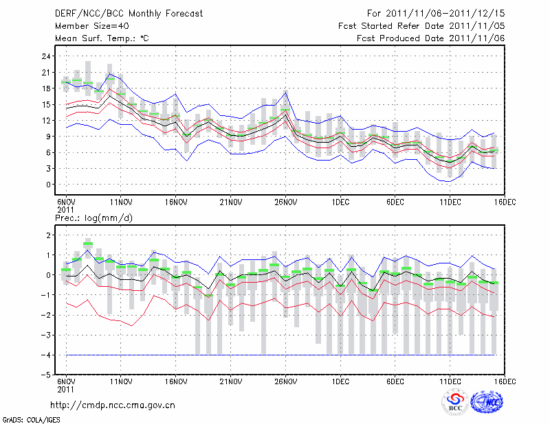 南 昌 (LAT:28.60 LON:115.92) 2011-11-06        预测