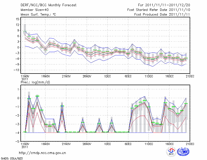 若 羌 (LAT:39.03 LON:88.17) 2011-11-11        预测