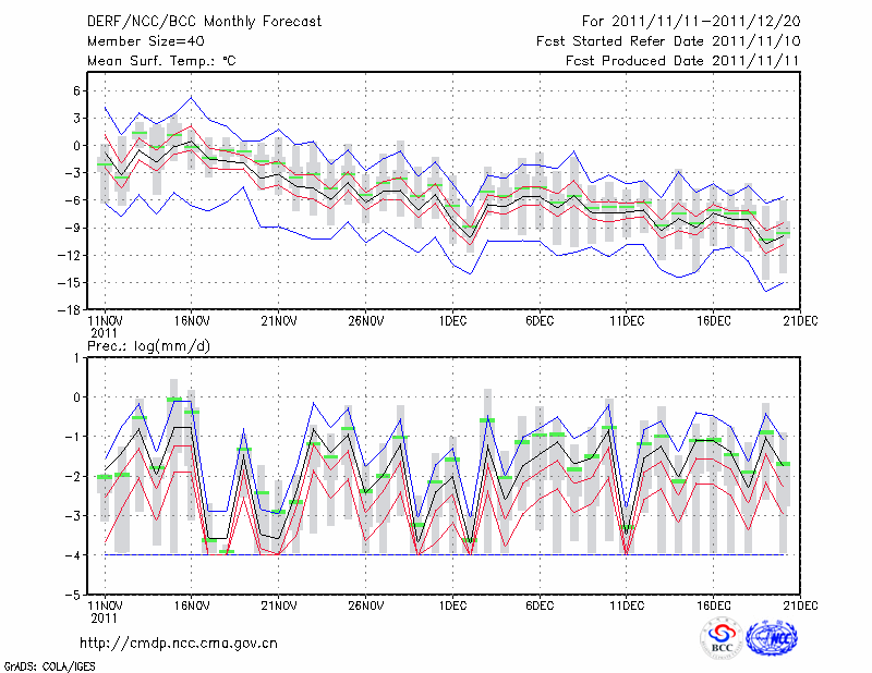 呼和浩特 (LAT:40.82 LON:111.68) 2011-11-11        预测