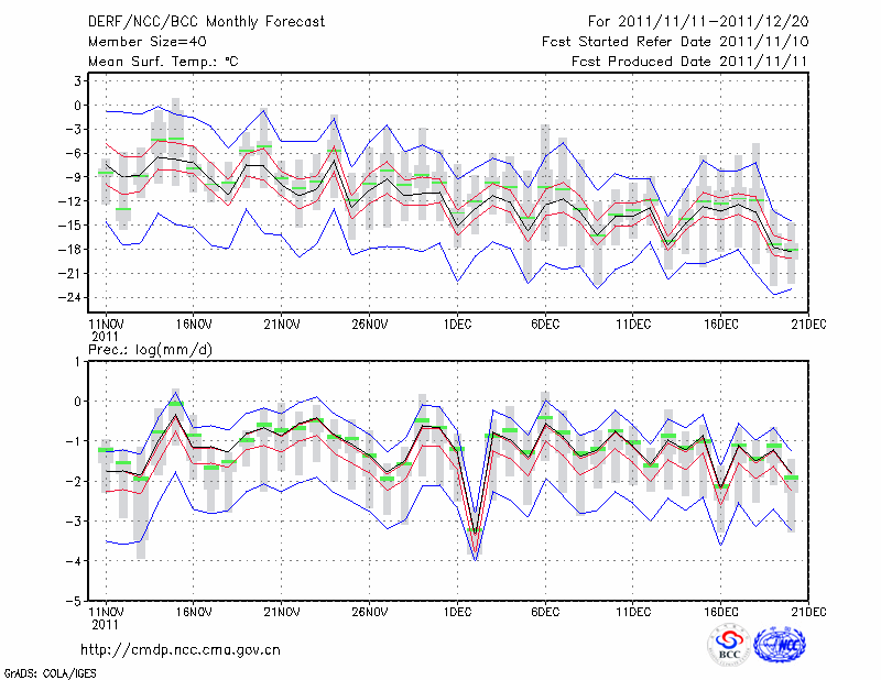 锡林浩特 (LAT:43.95 LON:116.07) 2011-11-11        预测
