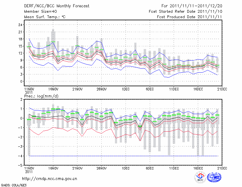 芷 江 (LAT:27.45 LON:109.68) 2011-11-11        预测