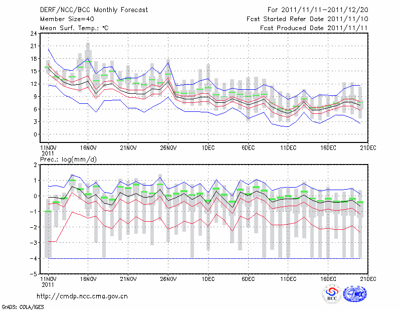 南 昌 (LAT:28.60 LON:115.92) 2011-11-11        预测