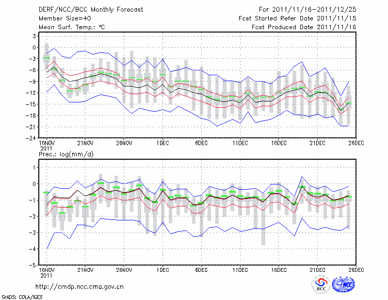 哈 尔 滨 (LAT:45.75 LON:126.77) 2011-11-16        预测
