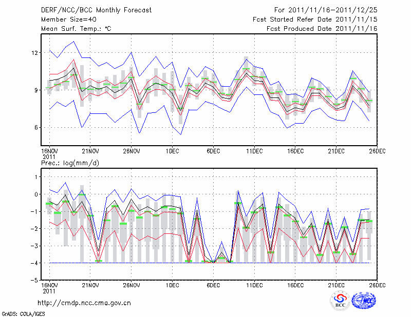 丽 江 (LAT:26.83 LON:100.47) 2011-11-16        预测