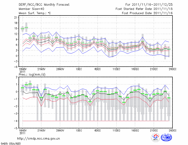 合 肥 (LAT:31.87 LON:117.23) 2011-11-16        预测