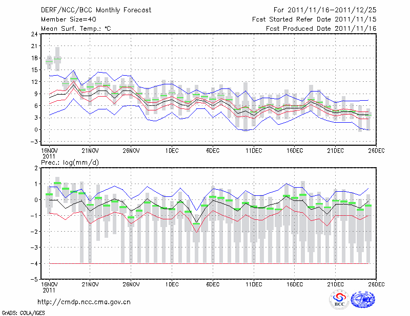 安 庆 (LAT:30.53 LON:117.05) 2011-11-16        预测