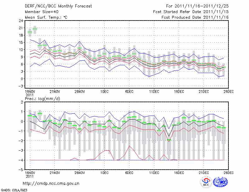 杭 州 (LAT:30.23 LON:120.17) 2011-11-16        预测