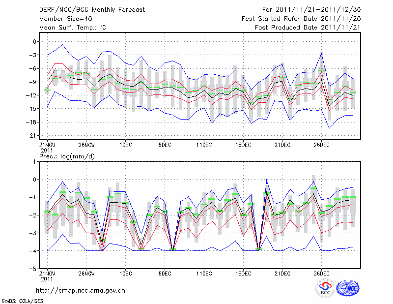 乌兰浩特 (LAT:46.08 LON:122.05) 2011-11-21        预测