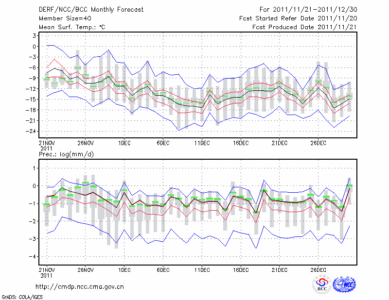 哈 尔 滨 (LAT:45.75 LON:126.77) 2011-11-21        预测