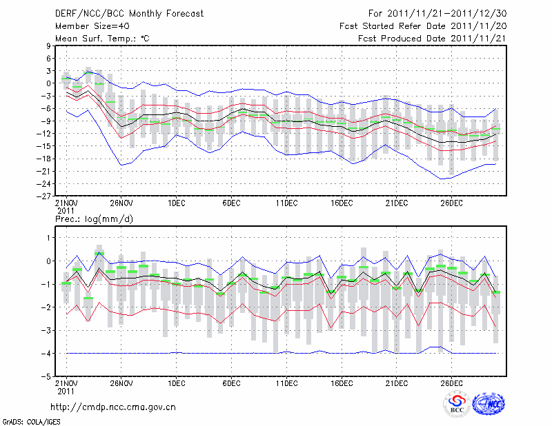 乌 苏 (LAT:44.43 LON:84.66) 2011-11-21        预测