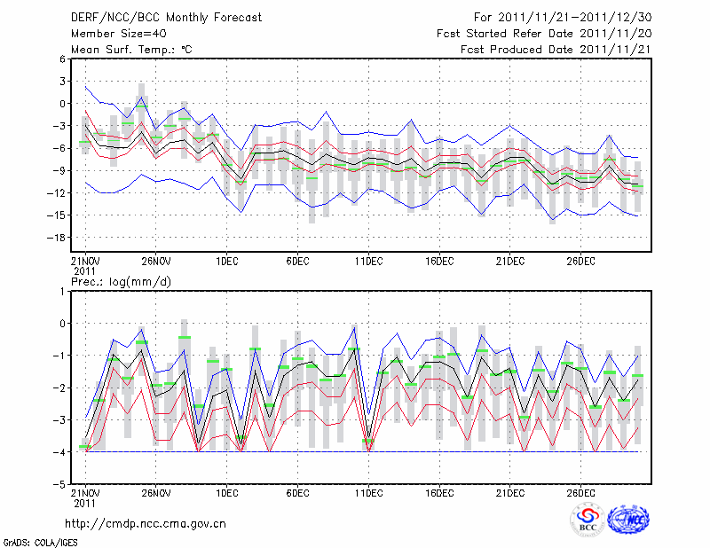 呼和浩特 (LAT:40.82 LON:111.68) 2011-11-21        预测