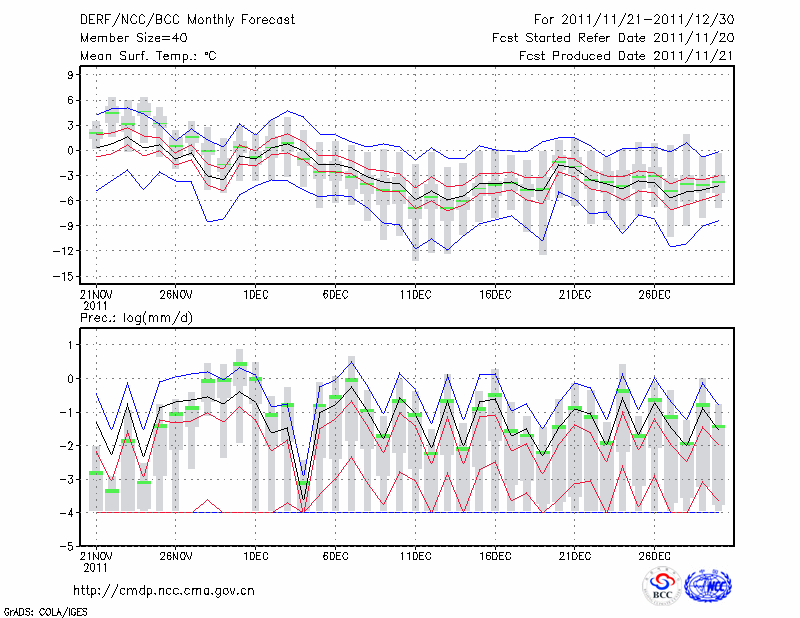 西 峰 镇 (LAT:35.73 LON:107.63) 2011-11-21        预测