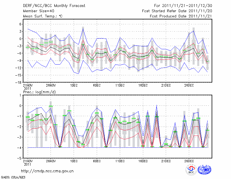 赤 峰 (LAT:42.27 LON:118.97) 2011-11-21        预测