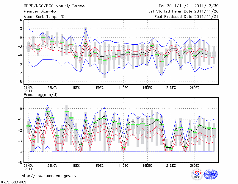 张 家 口 (LAT:40.78 LON:114.88) 2011-11-21        预测