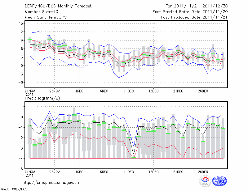 青 岛 (LAT:36.07 LON:120.33) 2011-11-21        预测