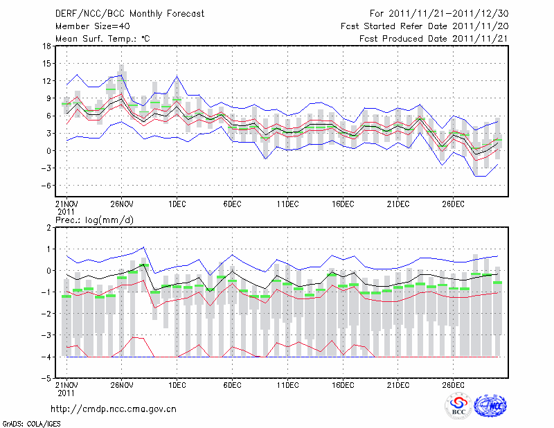 南 京 (LAT:32.00 LON:118.80) 2011-11-21        预测