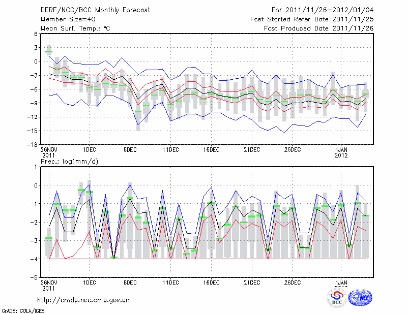 榆 林 (LAT:38.23 LON:109.70) 2011-11-26        预测