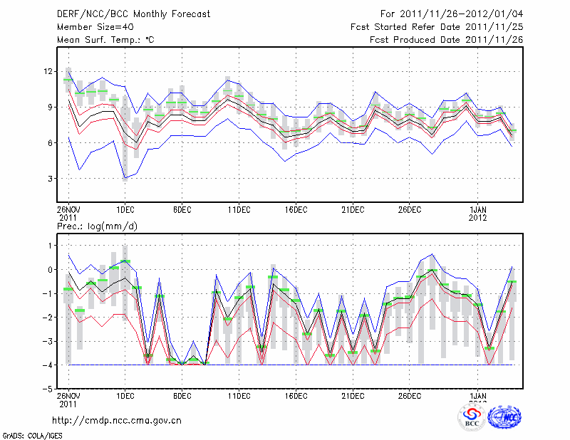 丽 江 (LAT:26.83 LON:100.47) 2011-11-26        预测