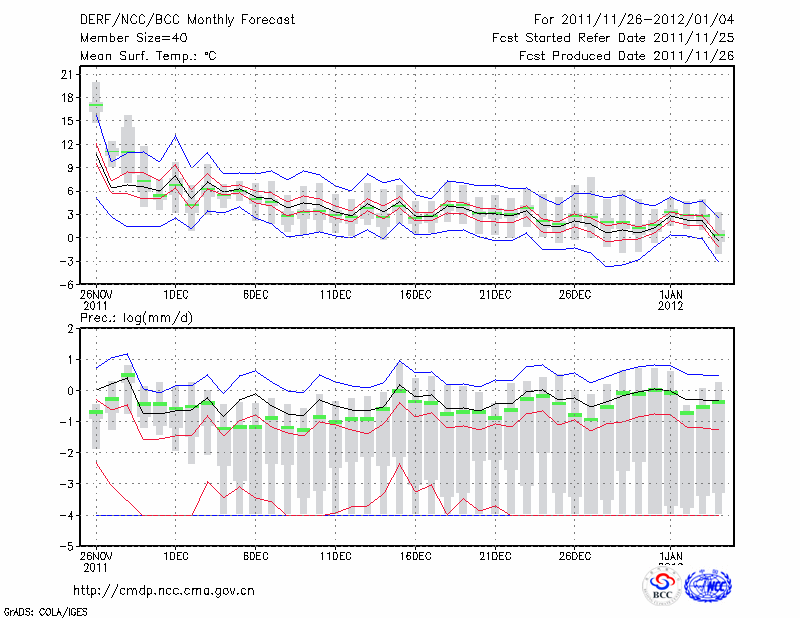 南 京 (LAT:32.00 LON:118.80) 2011-11-26        预测